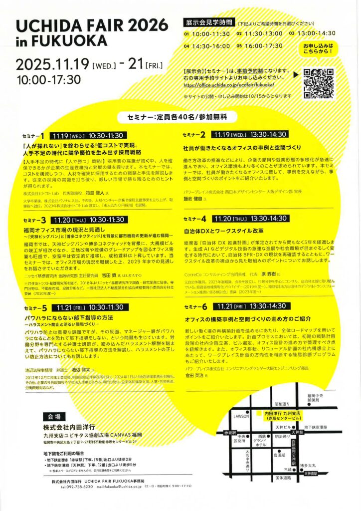 2025年11月21日 池辺健太弁護士「パワハラにならない部下指導の方法」研修 2025年11月21日 最終更新日時 : 2025年11月21日 池辺法律事務所 株式会社内田洋行様主催の「UCHIDA FAIR 2026 in FUKUOKA」において、池辺健太弁護士が下記セミナーの講師を務めました。 テーマパワハラにならない部下指導の方法ー ハラスメント防止と明るい職場づくり ー日 時2025年11月21日(金)10:30~11:30主 催株式会社内田洋行 様
